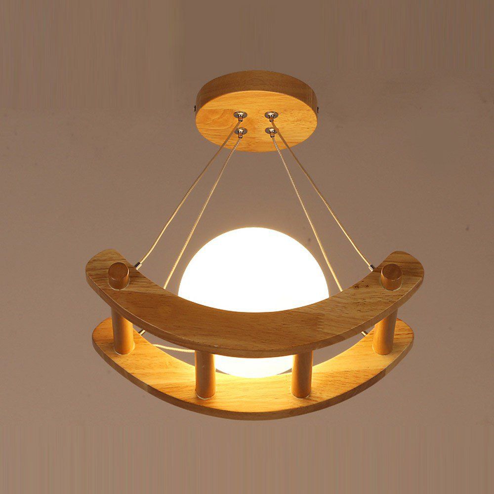 Wooden Glass Moon Boat Kids Bedroom Pendant Light Dining Room